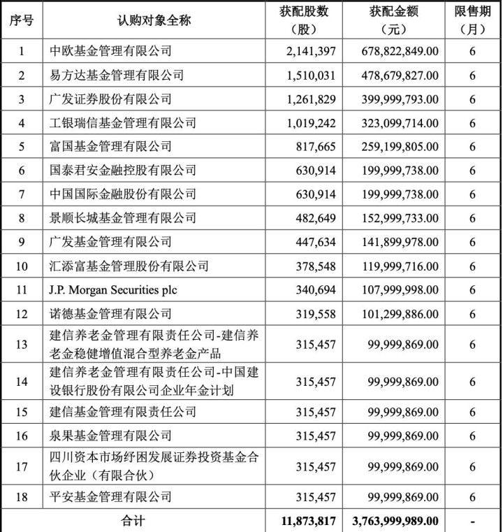 她们家一口气就拿下了接近6.8亿元的份额,是这次定增的“大金主”。
